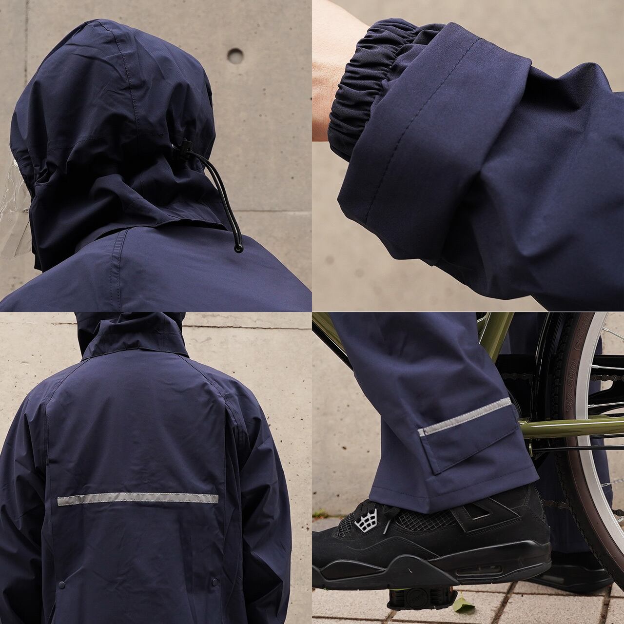 【レイニーエース】 リュック対応 レインスーツ 自転車 まわるフード ヘルメット対応 上下 サイクリング 通学 通勤 軽量 シンプル おしゃれ 防水 はっ水 撥水 訪問介護 ヘルパー 中学生 高校生 学校指定 スクール 制服 リュック 3WAY かばん 回転フード かっぱ日和